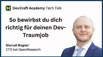 In diesem Tech Talk teilt Manuel Bogner, CTO von Open Research, seine siebenjährige Erfahrung mit Bewerbungsprozessen und Interviews in der Softwareentwicklung.